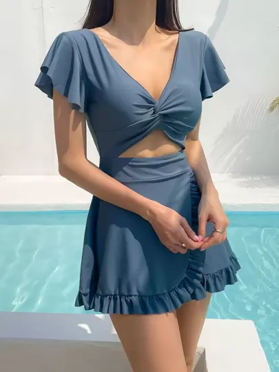 Los nuevos trajes de baño para niñas 2025, con estilo INS, bañador de una pieza con falda, modesto pero sexy, que adelgaza el abdomen y realza el busto, adecuado para aguas termales - Neblina azul - Añade 1