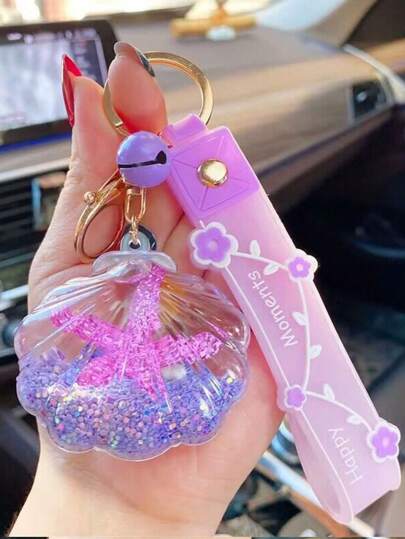 1 pieza Lindo llavero con diseño de botella flotante de acrílico creativa con estrella de mar morada para mujeres, coche, estudiantes, decoración de mochila, pequeño regalo, accesorio de coche, adorno de bolso - Morado - Añade 1