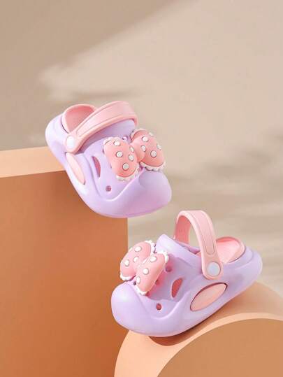 Pantuflas con arco de dibujos animados cute para niños en verano, pantuflas para el hogar antideslizantes para niños pequeños y medianos - Morado - Añade 1