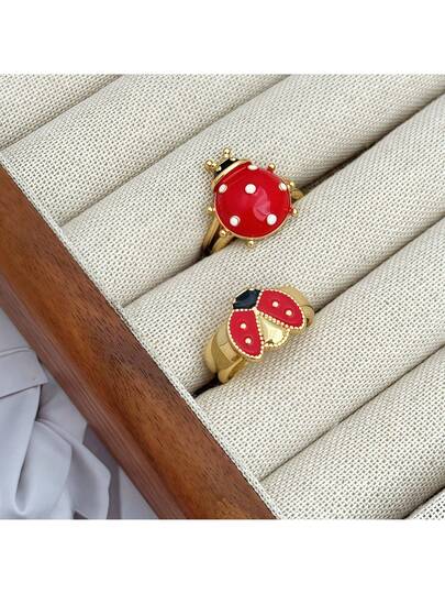 Anillo ajustable de cobre con diseño de mariquita adorable, joyería dulce para uso diario para mujeres - Dorado - Añade 2