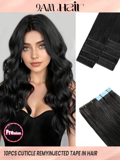 Extensiones de cabello humano virgen de alta calidad con cinta invisible, cabello Remy sin costuras inyectado, cinta de cabello natural negro, 10 piezas, 25 g, liso, extensiones de cabello con cinta - S1 - Añade 9