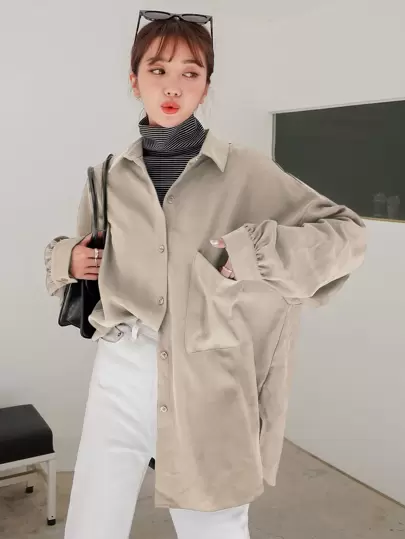 DAZY Camisa de hombros caídos con parche de bolsillo - Caqui - Añade 1