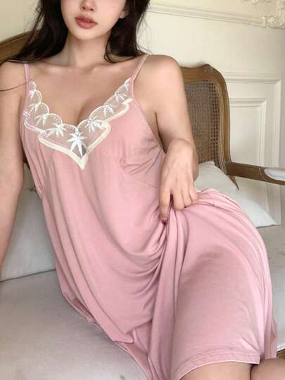 DAZY Vestido camisero de verano de malla transparente con bordados y contraste - Rosa - Añade 8