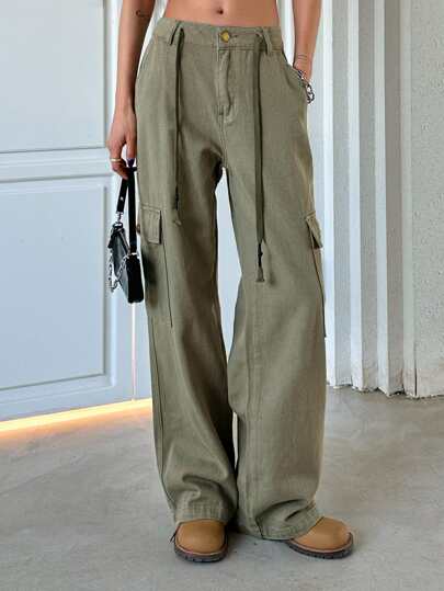 DAZY Jeans De Carga Con Detalles De Cordón Y Bolsillo Con Solapa - Verde militar - Añade 4