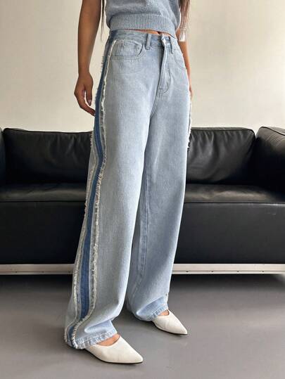 DAZY Jeans De Pierna Recta De Cintura Alta Con Costura Lateral Contrastante - Lavado ligero - Añade 5