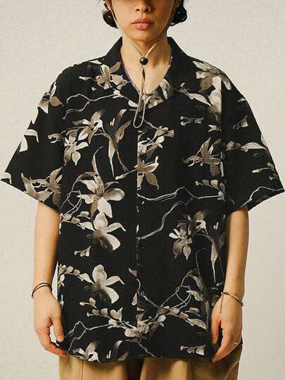 DAZY Camisa de playa de verano para hombres con estampado floral en negro - Multicolor - Añade 1