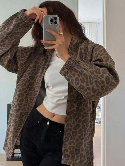 DAZY Nueva llegada Chaqueta vaquera de mujer con estampado de leopardo, para otoño - Marrón - Añade 1