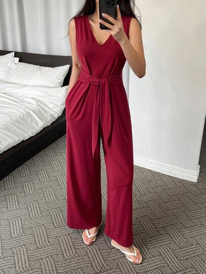 DAZY Mono de unicolor y de talle alto para mujer, ropa de estar por casa - Burdeos - Añade 3