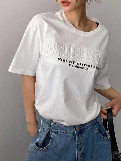 DAZY Camiseta de hombros caídos con estampado de slogan - Blanco - Añade 1