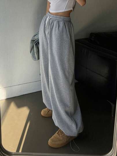 DAZY Pantalones de chándal con cordón en la cintura, estilo coreano casual y holgado para mujer - Gris - Añade 1