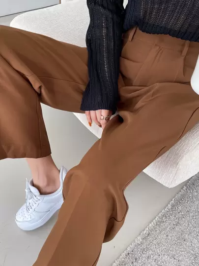 DAZY Pantalones rectos con cremallera con fruncido - Café integral - Añade 4