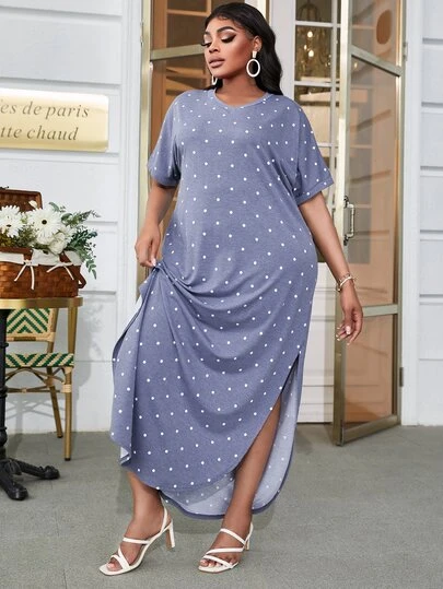 DEARCASE Vestido con estampado de lunares bajo con abertura - Azul - Añade 1