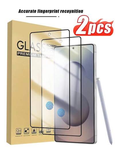 2 piezas Protector de pantalla de vidrio templado de diseño curvo para Samsung S21/S21 Plus/S22/S22 Plus/S23/S23 Plus/S24/S24 Plus/S24 Ultra/S25/S25 Plus/S25 Ultra/S26 Ultra/S26/S26 Plus, desbloqueo de huella digital, borde negro estrecho, resistente al agua, antihuellas, antideslizante, antirayones, antióleo - transparente - Añade 31
