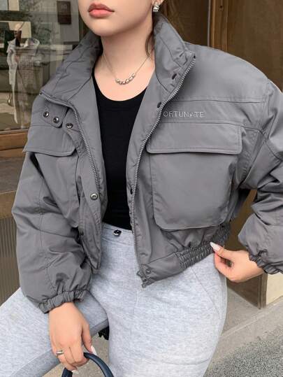 Dazy Petite Plus Abrigo acolchado grueso de talla grande con bolsillos grandes y cuello alto - Gris Claro - Añade 5