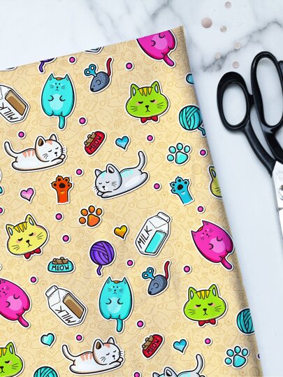 Tela De Costura De Bricolaje Con Estampado De Gato Beige - Multicolor - Añade 1