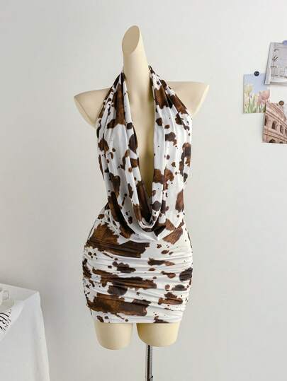 Soleia Vestido mini con estampado tropical colorido para mujer, con mangas tipo gorra, cordón en la cintura, borde con volantes, estilo vacacional - Multicolor - Añade 4