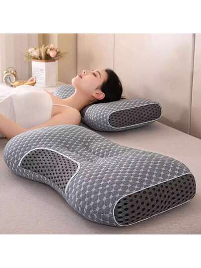 2-Pack Grey/White Ergonomic Pillows For Neck Pain Relief, Breathable Cotton Pillows For Side Sleepers - Multicolor - Añade 7