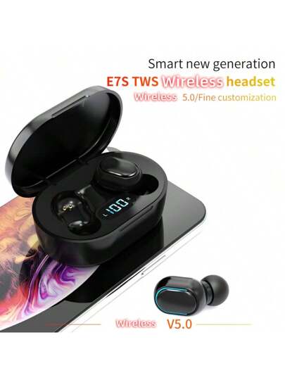 E7S Auriculares inalámbricos verdaderos, mini auriculares intraurales con larga duración de batería extendida, portátil para deportes - Negro - Añade 9