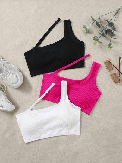 Easithlete paquete de 3 sujetadores deportivos sin costuras con cuello asimétrico, en unicolor - Multicolor - Añade 3