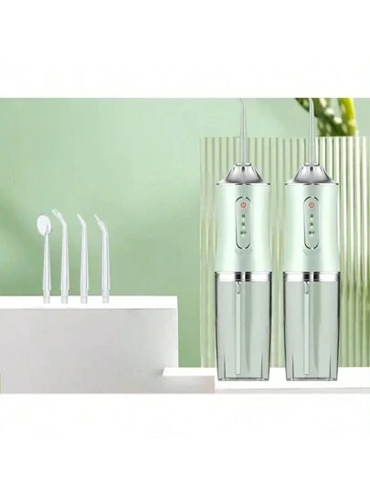 Limpiador de dientes eléctrico Irrigador dental Irrigadores orales portátiles Recargable&Portátil con 360 ° de Riego De Rotación - Verde - Añade 4