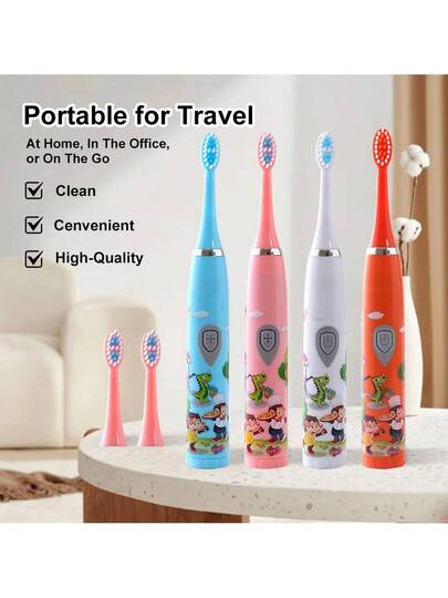 Cepillo de dientes eléctrico, cepillo de dientes eléctrico para adultos con 3 cabezales de cepillo, diseño ergonómico, adecuado para uso en el hogar, viajes y uso diario - Azul - Añade 2