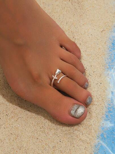 Elegante y con estilo Anillo en el dedo del pie de cobre chapado en plata con rosa, tamaño ajustable para pie y mano - 1,87 cm - Añade 4