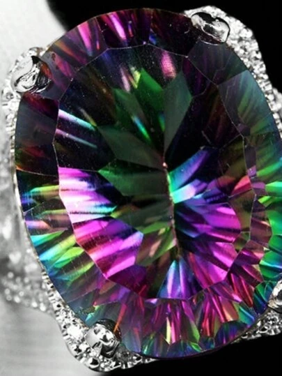 Anillo elegante con incrustaciones, exagerado, con grandes luces de colores reflectantes, perfecto como decoración para eventos de noche, cóctel y fiesta, regalo de cumpleaños ideal para su pareja - Multicolor - Añade 1