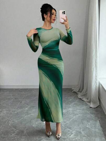 Graceveil Vestido elegante para mujer con cuello redondo, estampado floral de malla, para primavera/verano - Multicolor - Añade 1