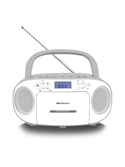 Reproductor de CD portátil con doble pletina de casete y radio AM/FM - Blanco - Añade 3