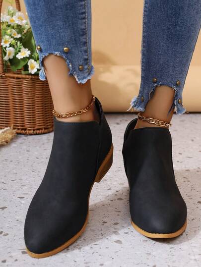 Botas de tobillo de color nude con cremallera posterior, talla grande, estilo vintage bohemio, diseño de primavera/verano - Negro - Añade 1