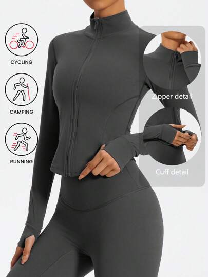 Modelos de primavera y verano de chaqueta deportiva de yoga resistente al viento, parte superior de protección solar para correr y fitness de secado rápido y corte slim - Gris - Añade 5