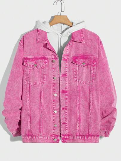 Manfinity VCAY Hombres Cazadora mezclilla algodón con bolsillo con solapa sin capucha - Rosa - Añade 1