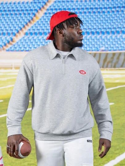 Manfinity Hombres Sudadera con estampado de letra con cremallera cuarta - Gris Claro - Añade 1