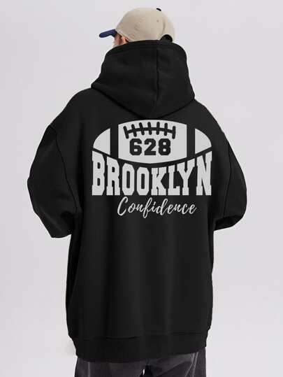 Aesthetic Post Hombres Capucha con estampado de letra con forro térmico con cordón - Negro - Añade 1