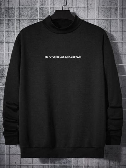 Manfinity RebelGame Hombres Sudadera con estampado de slogan de cuello alto - Negro - Añade 4