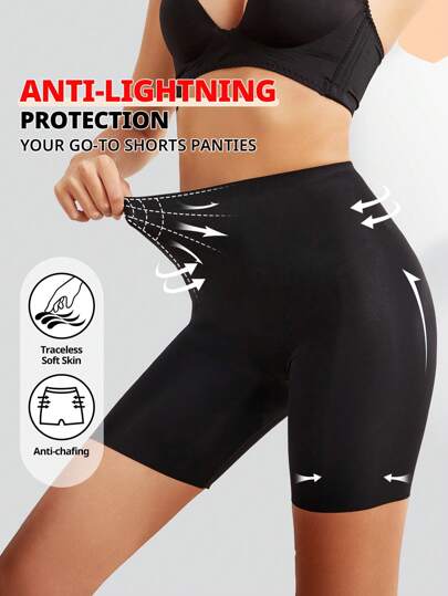 FLARIXA Pantalones cortos de tipo bóxer de una sola pieza sin costuras, de cintura alta, con control de abdomen, refrigerantes y transpirables - Negro - Añade 3