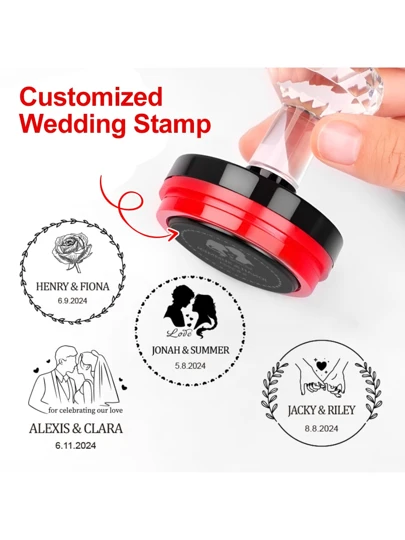 Sello personalizado de boda para parejas - Personalizable con nombres y fechas - Sello elegante de recuerdo de boda para invitaciones, tarjetas de agradecimiento y recuerdos de boda - Perfecto para recién casados, celebraciones de aniversario y eventos especiales - Sello personalizado con diseños románticos para agregar un toque personal a su día especial - Negro - Añade 4