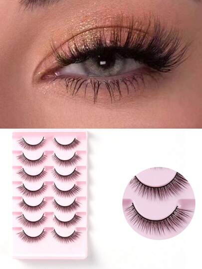 Pestañas postizas, 7 pares de pestañas postizas naturales de maquillaje, tiras de pestañas postizas, pestañas, pestañas postizas - Negro - Añade 1