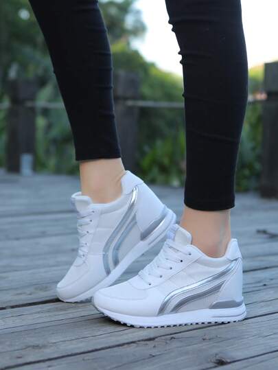Zapatillas de plataforma con cuña transpirables para mujer para otoño/invierno - Blanco - Añade 4