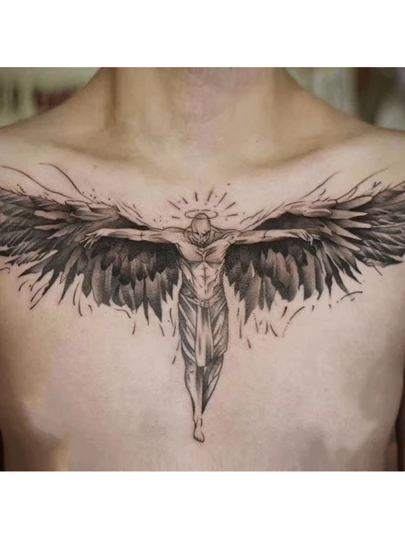 Tatuaje temporal de ángel caído con hierbas para el área del pecho, realista y de larga duración. Aparece gradualmente y dura de 7 a 15 días. Resistente al agua y a la fricción. - Negro - Añade 1