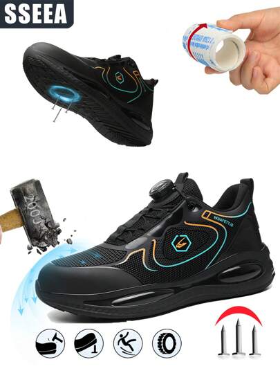 Zapatos de trabajo para hombres con nuevo diseño de botón giratorio, antimpacto, antiperforación, antideslizante y resistente al desgaste - Negro - Añade 1
