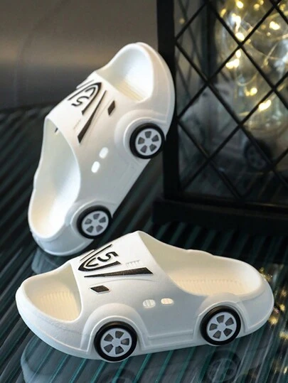 Zapatillas de estar por casa antideslizantes con diseño de coche de dibujos animados para niños pequeños de moda - Blanco - Añade 4