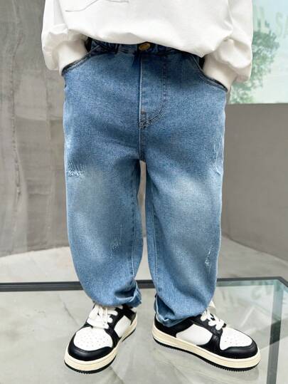 Jeans de moda de primavera y otoño con diseño de rasguño para un niño joven - Azul - Añade 4