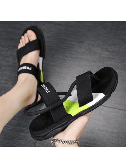 de moda Sandalias de dedo para hombres , con estampado de letra de talón abierto exterior Sandalias - Negro - Añade 1