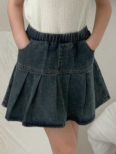 Hapijoa Minifalda vaquera de moda para niñas preadolescentes, apta para el verano - Azul lavado medio - Añade 1