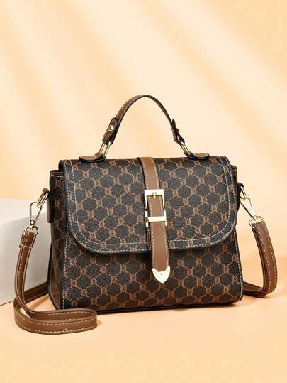 Bolso de hombro único y de moda con cierre de broche, bolso cruzado de alta calidad con forma de almohada para mujeres - Marrón - Añade 2