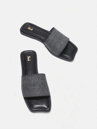 Sandalias Planas De Moda Para Mujer - Negro - Añade 2