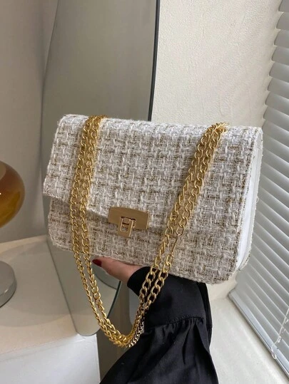 Bolso de hombro con solapa y cadena de moda para mujer - Blanco - Añade 1