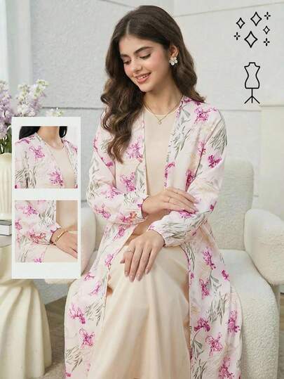 Conjunto de abaya con estampado floral, jalabiya, bata y falda maxi holgada, atuendo para adolescentes, adecuado para eventos culturales, actividades al aire libre, festivales, primavera/otoño - Multicolor - Añade 1