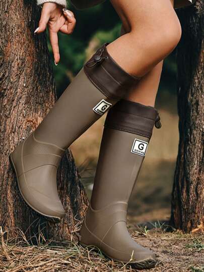 Botas de lluvia plegables para mujer, impermeables, antideslizantes de caña alta para la temporada de lluvias, primavera/verano/otoño - Marrón - Añade 1